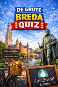 Samen met collega’s, vrienden of familie vormt u teams en gaat u de strijd met elkaar aan. Onze quizmaster neemt u mee langs de mooiste locaties, historische momenten en typische weetjes van Breda. Herkent u een bekende straat aan een foto? Weet u welk verhaal achter een monument schuilt? Of herkent u een liedje dat alles met de stad te maken heeft?